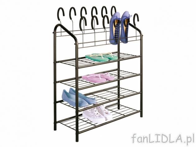 - z 12 wyściełanymi uchwytami na buty i 4 półkami