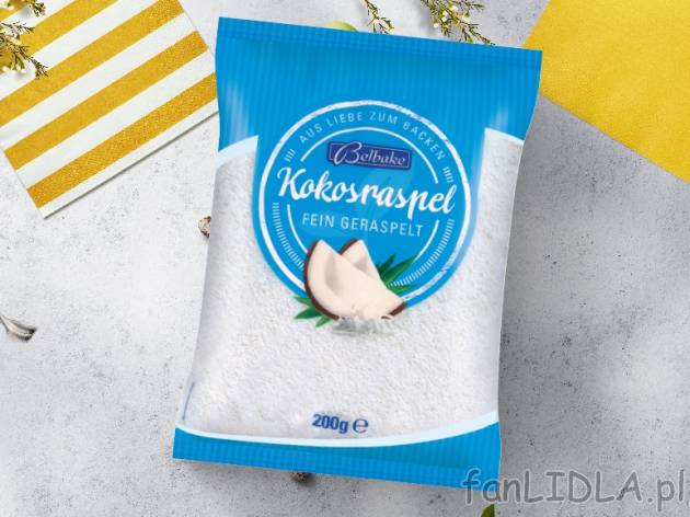 Belbake Wiórki kokosowe Lidl, cena 2,00 PLN za 200 g/1 opak., 100 g=1,40 PLN.