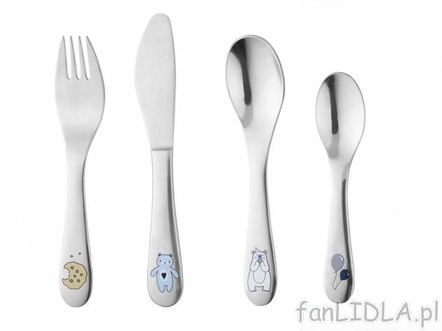 Sztućce dziecięce - zestaw Lidl, cena 19,99 PLN za 1 opak. Sztućce z uroczymi dziecięcymi rysunkami. Zestaw dla każdego niejadka!