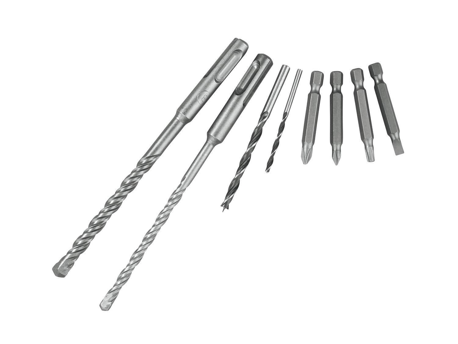 - w zestawie: uchwyt wiertarski, 2 wiertła do betonu SDS, 2 wiertła do drewna, 4 wkręcane bity 50 mm